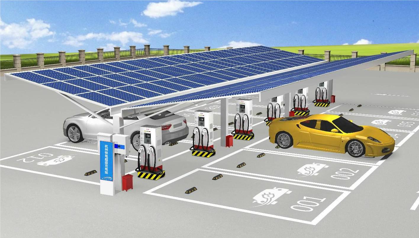 场停车棚顶是利用光伏组件搭建顶棚,建成分布式光伏发电项目